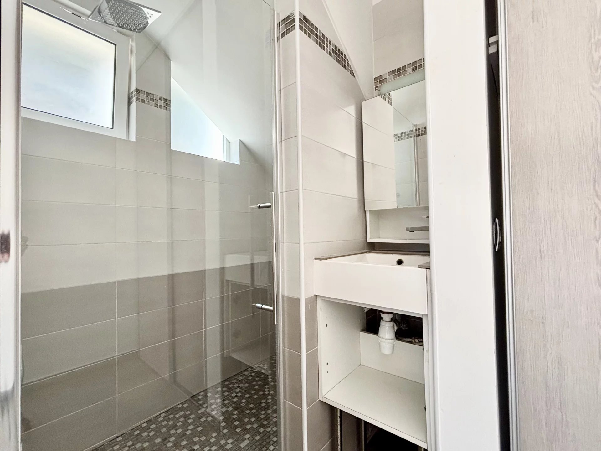 Au rez-de-chaussée, un agréable 3 pièces propose un séjour lumineux avec cuisine ouverte, une chambre en suite avec sa salle d’eau, ainsi qu’une seconde grande chambre. Une salle d’eau supplémentaire et des WC indépendants complètent cet espace confortable.