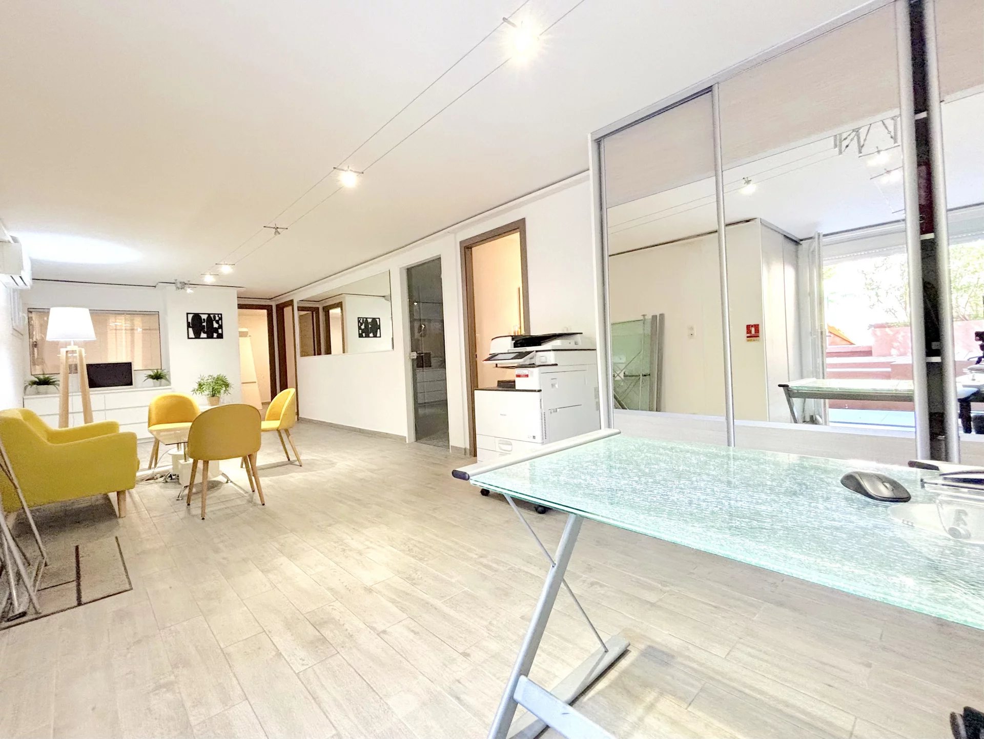 En entresol, un vaste espace d’environ 75 m² avec ouvertures extérieures, actuellement aménagé en bureau, représente un véritable atout. Indépendant, il permet d’exercer une activité professionnelle en toute tranquillité, tout en offrant un fort potentiel d’aménagement. Il a été intelligemment conçu pour permettre, si souhaité, la création d’un escalier reliant directement cet espace à l’appartement du rez-de-chaussée, facilitant ainsi une réorganisation complète des volumes.